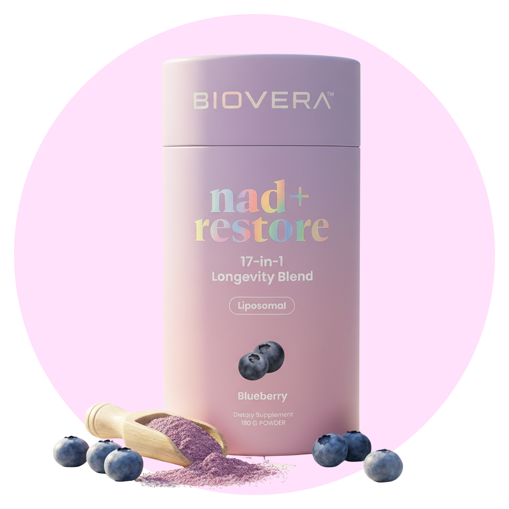 NAD⁺ Restore has a light, natural blueberry flavor that mixes smoothly without bitterness or artificial aftertaste.