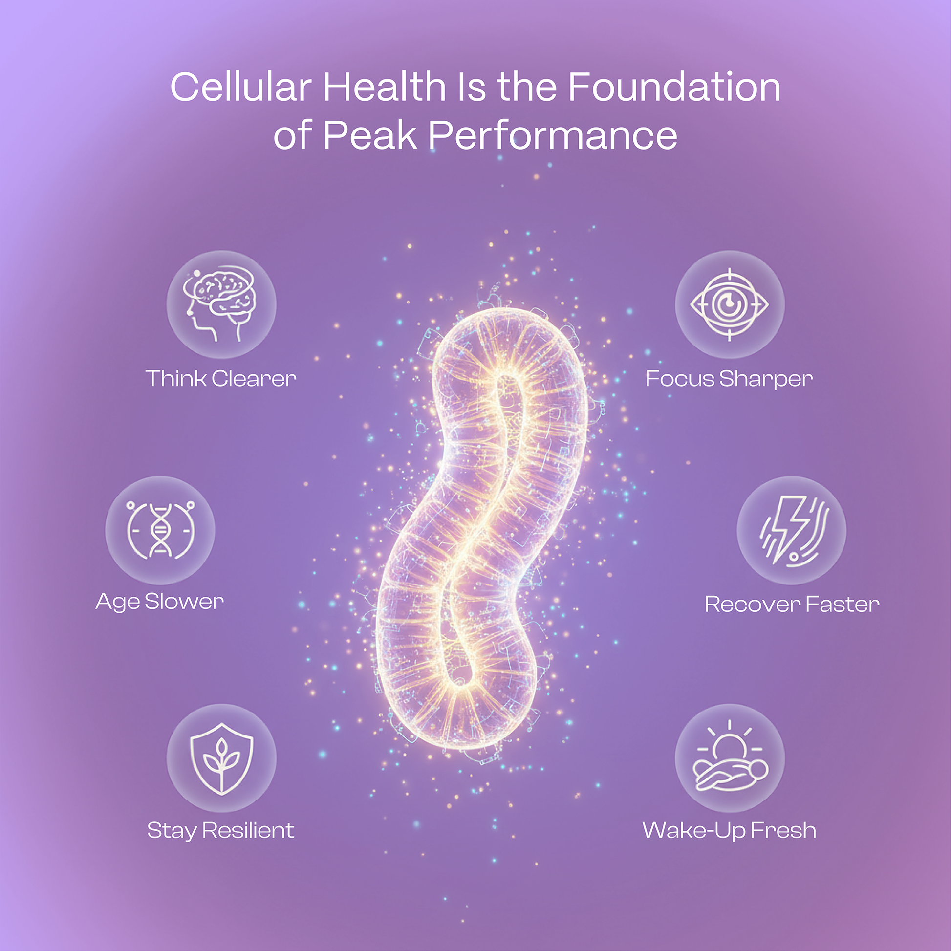 Targets aging at the cellular level by restoring NAD+ — the coenzyme that declines up to 80% with age and directly fuels the sirtuin and PARP enzymes responsible for DNA repair, cellular longevity, and healthy aging.